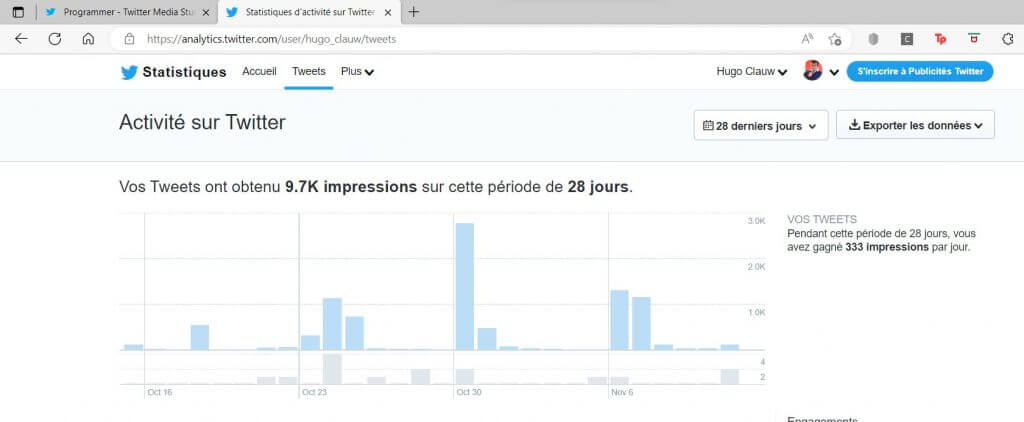Récapitulatif sur 28 jours sur Twitter, Facebook et Instagram.